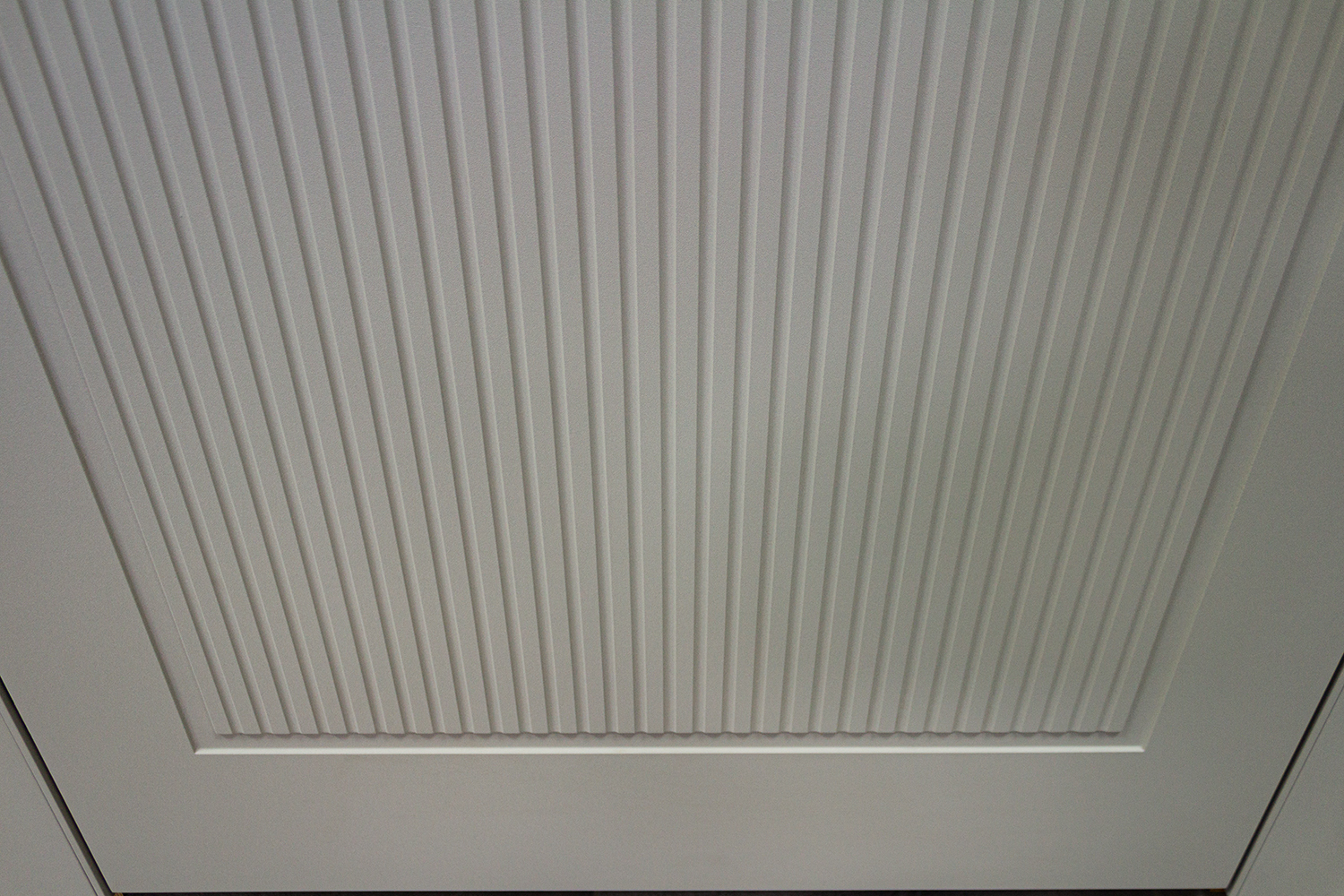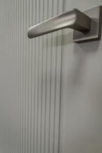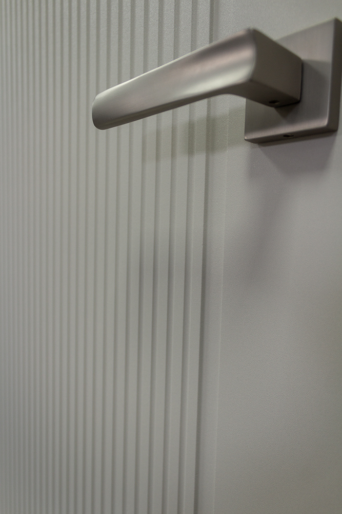 1. Дверне полотно покривається клейєм, після чого огортається плівкою ПВХ на спеціальному вакуумному верстаті при впливі високих температур.Технологія покриття запатентована. Вона розроблена таким чином, що полотно огортається повністю, не маючи стиків плівки. Перед поклейкою ПВХ, по периметру полотна, на торці робиться паз. Після поклейки краї покриття загортаються глибоко в паз і в цей паз щільно вставляється спеціальна рейка. Така технологія унеможливлює доступ води до внутрішньої частини полотна, а також виключає загортання та відклеювання плівки під механічним або тепловим впливом.